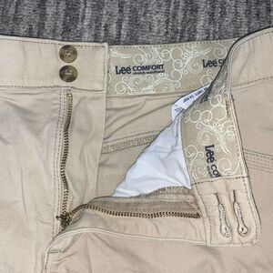 Vintage Y2K Lee Comfort Women’s 12 Medium Khaki Tan Flat Front Mom Shorts Stretc