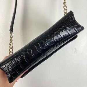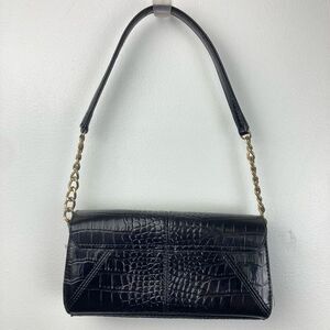 Vintage Y2K Mini Satchel Shoulder Bag Black Alligator Print Brass Chain Vegan