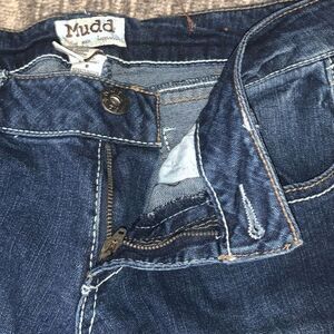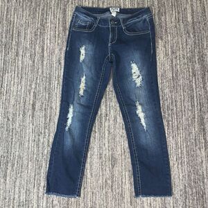 Vintage Y2K Mudd Jeans Youth Size 9 Distressed Jeans Tapered Ankle Dark Blue
