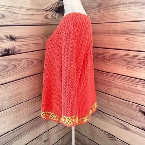 Salmon-pink & yellow floral hand crochet sweater top