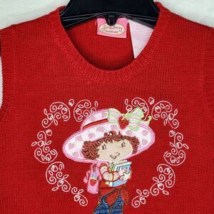 Vintage Y2K Strawberry Shortcake Embroidered Red Knit Vest Size 5