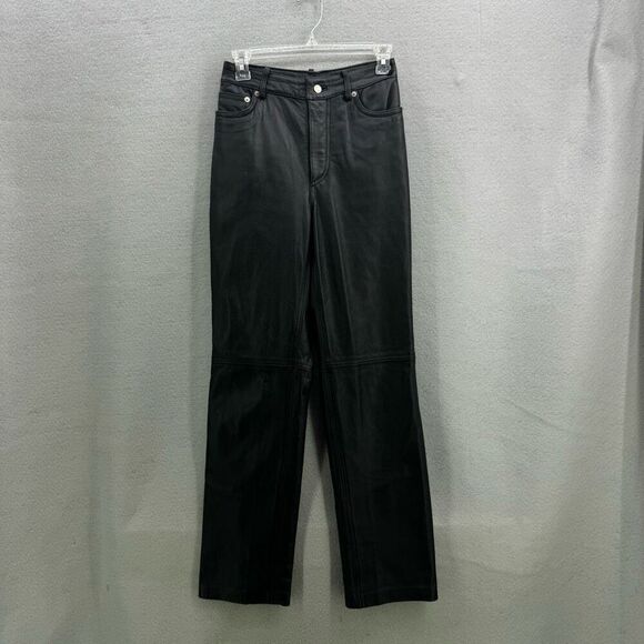 Vintage Y2K Tommy Hilfiger Straight Leg Black Genuine Leather Pants Size 4 STUNN