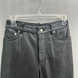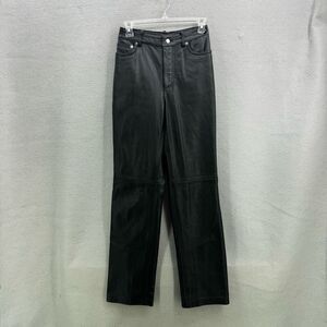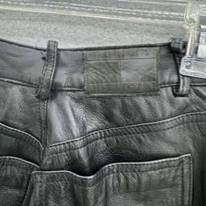 Vintage Y2K Tommy Hilfiger Straight Leg Black Genuine Leather Pants Size 4 STUNNING