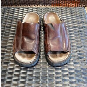 Vintage, Y2K, sketcher, sandals, in good preowned condition men’s size 9 normal wear and tear. There is a black mark on one of the shoe see pictures for more details still wearable.  has a lot of life left them. Super cute and trendy.