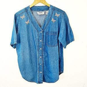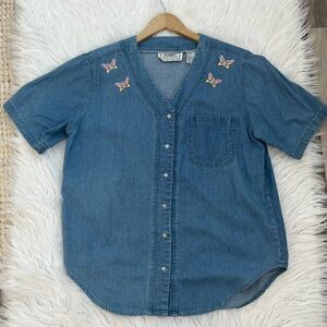 Vintage Y2K Embroidered Butterfly Denim Shirt Size Medium