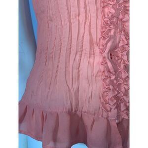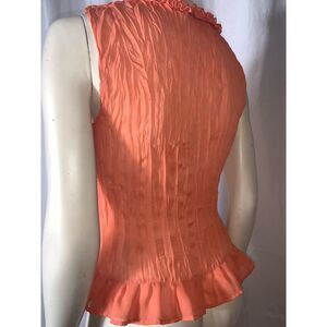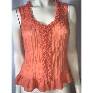 Vintage Y2K Chiffon Ruffled Blouse. ALLISON TAYLOR Coral sheer chiffon button down ruffled sleeveless blouse. Size Medium. Crinkle material allows for some stretch. Model size 8 for reference