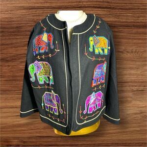 Vintage YakMagik Womens Wool Embroidered Patchwork Elephant Stitched Blazer sz S