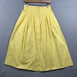 Vintage Yellow Midi Skirt Pleated Button Front Peddlersport Adjustable Sz Small