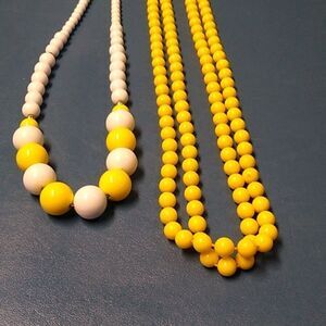 Vintage Yellow and White Graduated Beaded Plastic/Resin/Lucite Necklace