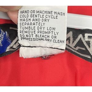 Embrace the retro vibe with the Vintage Zermatt 90s Red Ski Jacket, designed for the fashion-forward, outdoor enthusiast. This women's size large coat brings a blast of nostalgia with its vibrant red color and classic 90s ski theme. The durable nylon outer shell and lining ensure comfort and warmth, while the polyester insulation offers an extra layer of coziness during chillier adventures.