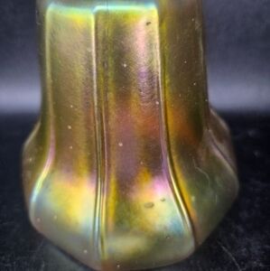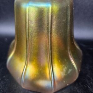 up for sale is this vintage / antique steuben ribbed lampshade. beautiful gold iridescent color