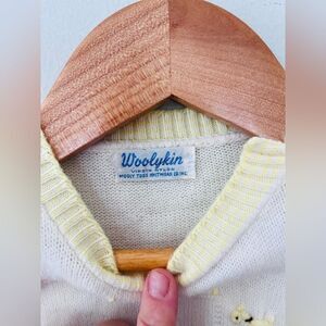 Gently preowned vintage condition. Top button is missing the loop to connect to. 100% wool. Fit size 9 months.