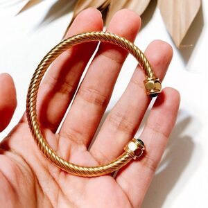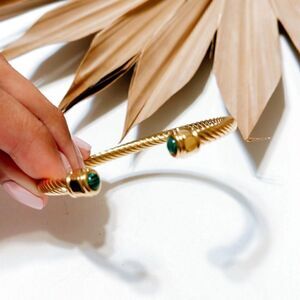 Italian vintage Textured green stone bangle bracelet in gold tone