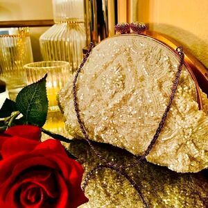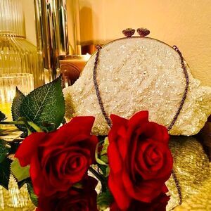 ♥️ Vintage beaded purse, wedding clutch 1950s-60s Iridescent jeweled clasp
