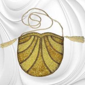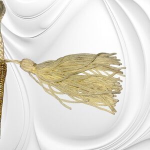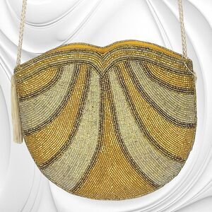 FEATURES: gold/yellow/white beading with side tassels. One side is brighter than the other