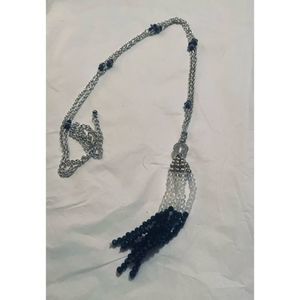 Vintage black and WHITE SPARKLE TASSLE NECKLACE