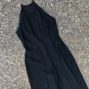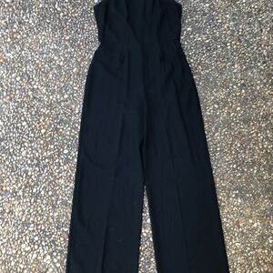 The little black dress just morphed Into a jumpsuit!! Super cute with full cut legs and fitted bodice/waist. Belthoops bug no belt so you can add your own. Marked size 8. Bust 35. Waist 30. Hips 40. Inseam 31 inches.