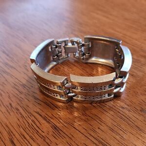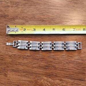 vintage chain link bracelet. unknown maker or material. possibly stainless steel. see pics for details and measurements