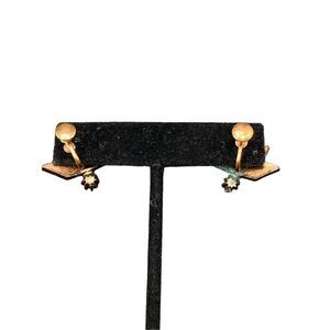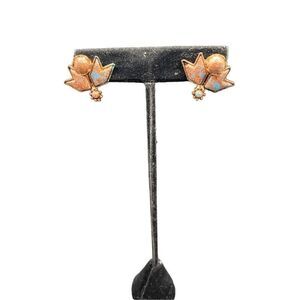 Vintage copper fleck and blue screw back earrings in arrow shape