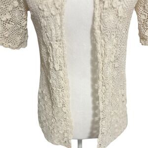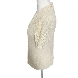 Vintage crochet sweater vest jacket cream large Japanese hand knit
