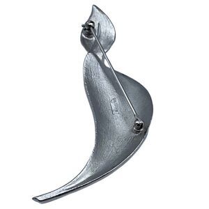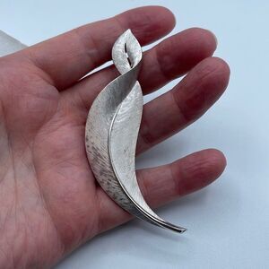 Vintage crown Trifari curved feather leaf brooch. This is a very modern design brushed silver colored metal leaf by Crown Trifari. Minimal wear. Beautiful clean lines. Clearly stamped on back.