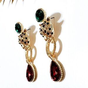 Tiger crystal drop dangle earrings in gold tone hardware