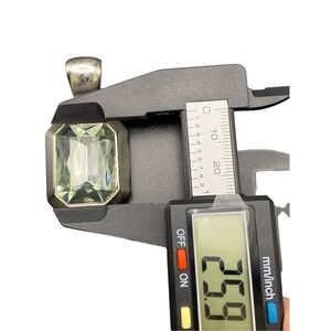 Vintage emerald shape glass pendant matching post earrings tested .500 silver content large in size