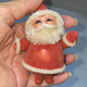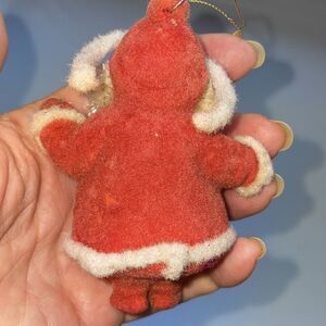 Good vintage with some flocking rubbed off & Santa’s hat band is coming loose /all shown in pictures