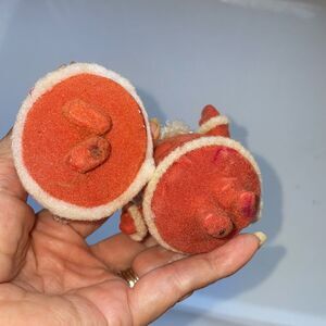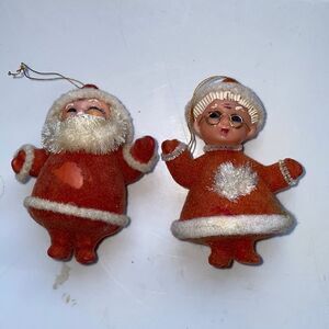 Vintage flocked Santa Claus & Mrs Claus Christmas tree ornaments