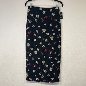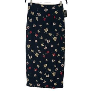Waist 14” Full length 36” Back slit 16” Full width 19” Zipper back closure No stretch Navy with floral