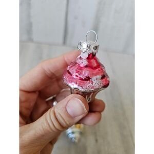 Vintage glass cupcake Church chapel Bell mini ornament set Xmas tree