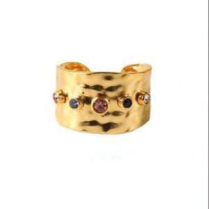 Multicolor rhinestone decor vintage style ring in gold tone hardware