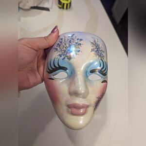 Vintage handmade ceramic Mardi gras lavender metallic shiny wall decor mask