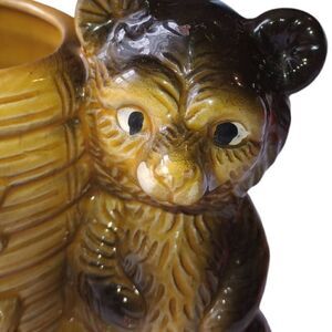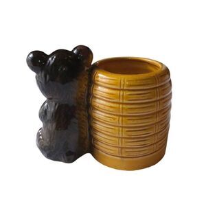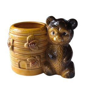 Pre-owned vintage small bear with honey hive ceramic figurine. Super adorable, unmarked. Toothpick holder or whatever you'd like
