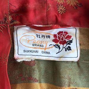 This is a beautiful piece they can either be worn around the house or outside as a duster. It is in great condition. It is like an orange red. Made in Shanghai China
