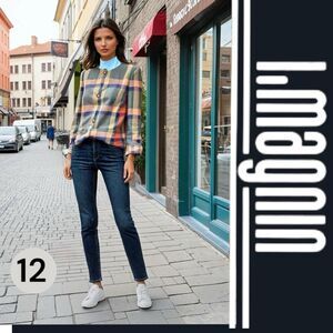 Vintage l.Magnin Women's Tartan Plaid Checked Tweed Jacket Multi-Color Size 12