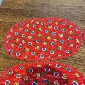 Vintage late 60s/early 70s six red quilted flower power placemats