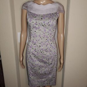 Super cute and elegant Vintage lavender floral print midi dress by Bellum.