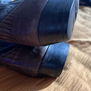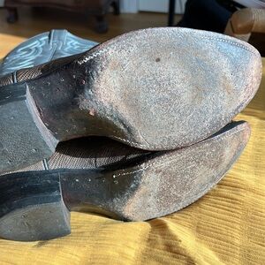 These boots are too incredible not to post here! They're by Justin so clearly they're all leather and skin. My dad wore these quite a bit but they still look like they're in incredible condition. Leather soles and beautiful blue and white stitching detail.