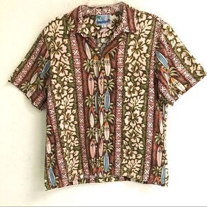 Vintage made in Hawaii hibiscus & surfboard Hawaiian shirt L
