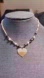 Vintage mother of pearl dbl sided heart, raw hetian jade blk opal, bead necklace
