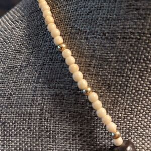Very pretty 2 different patterned mother of pearl heart, rare raw hetian jade pieces, opal pieces just not positive which one though looks like opal, small smooth goldtone divider beads, small round white beads that also act as dividers but then make up the majority of the chain part of the necklace as well. This is a shorter necklace at 16" which best suits this one. Since the heart of also made solely out of mother of pearl it has that beautiful mother of pearl rainbow sheen of colors & two distinctive looks to the heart depending which side you wear it on. See pics #1-6. New