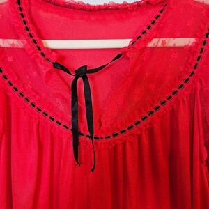 Vintage night gown, long red short sleeved. Size L. #846
