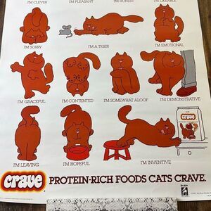 Vintage original CRAVE Cat Food full size poster advertising 1982 Kal Kan Guide