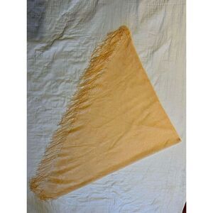 Vintage peachy/yellow crocheted scarf with fringe triangle