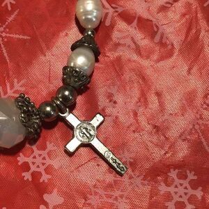 Vintage pearl and silver cross bracelet