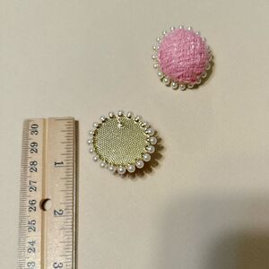 Vintage style pink geo round pearl decor stud earrings in gold tone hardware