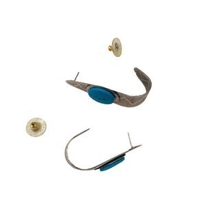 Vintage pierced textured zig zag silver tone earring with faux oval turquoise stone. J shape. Euc