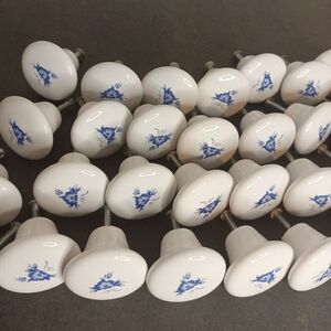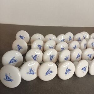 there are 33 door pulls in this set , they're in vintage pre owned condition. door pulls even cheap brand new ones are $8 each or higher at the hardware stores. these are nice. will consider splitting the lot up. they aren't perfect, please see pics. they don't have any major chips and no cracks.