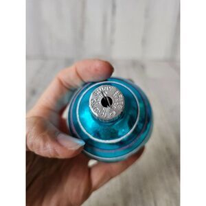 Vintage radko reflector shiny bright blue striped ball ornament silver Xmas tree